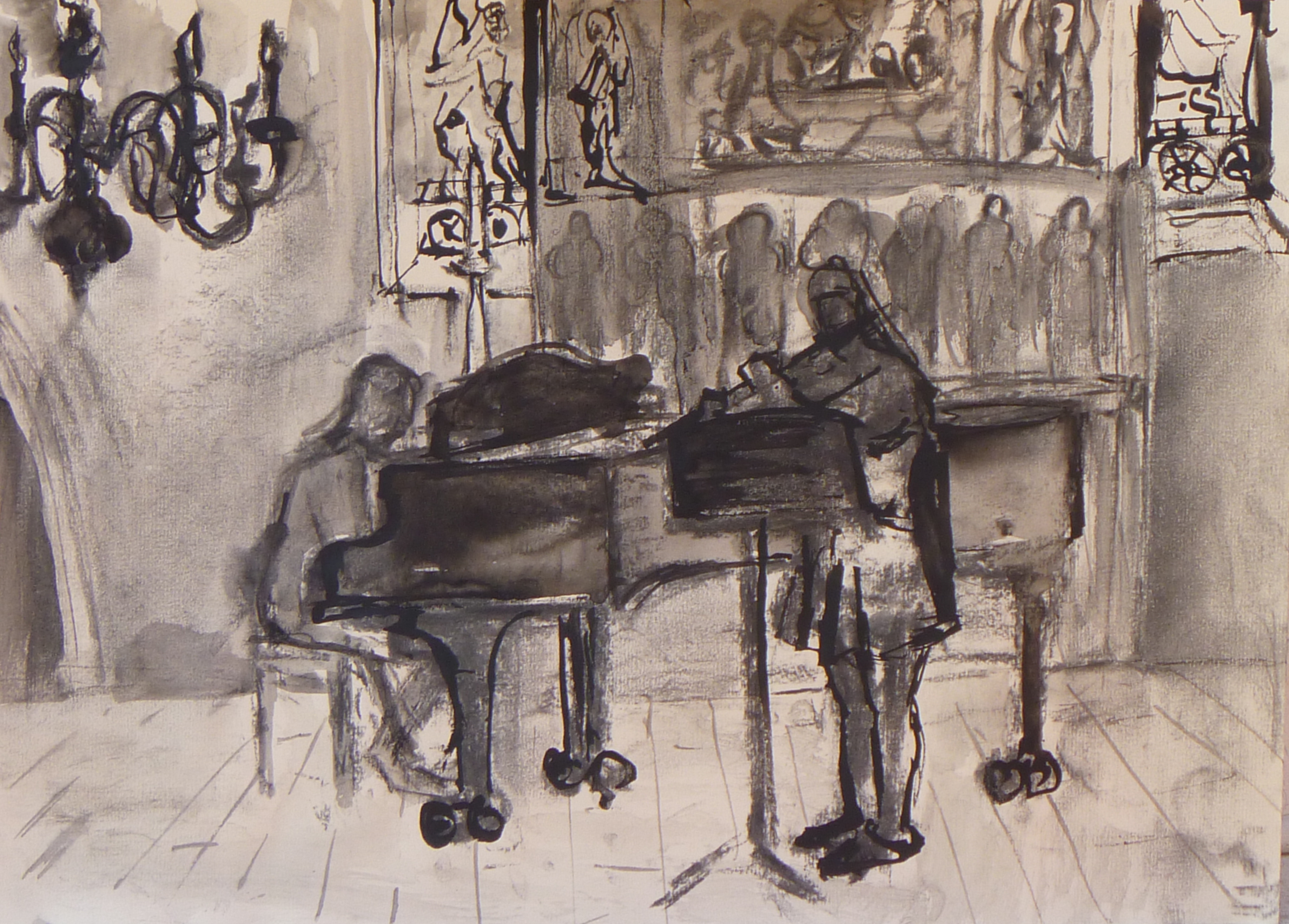 MICHAELHOUSE STUDY, CONCERT ink, charcoal on paper 9 x 40 cm