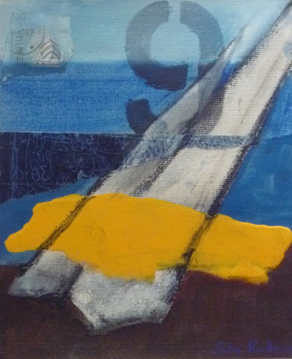 BOAT NUMBER 9 collage, Hammerite, pastel on paper