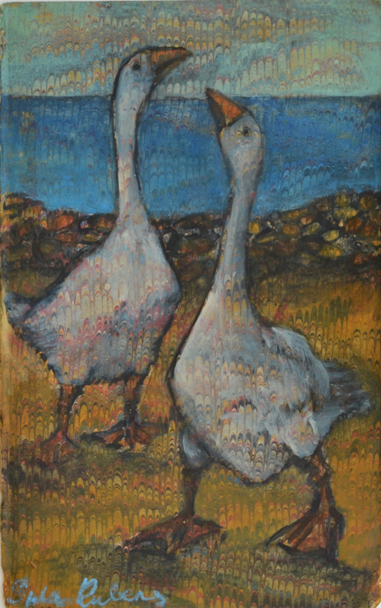 Next Previous Two Geese watercolour on antique marbled paper 18.8 x 11.8 cm February 7, 2021 1592 × 2542 Two Geese Watercolour on antique marbled paper 18.8 x 11.8 cm
