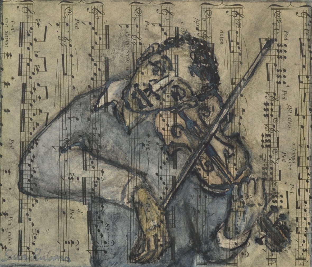 Next Previous Violinist Study Charcoal & watercolour on paper (sheet music) 19.5 x 22.5 cm July 6, 2022 2538 × 2178