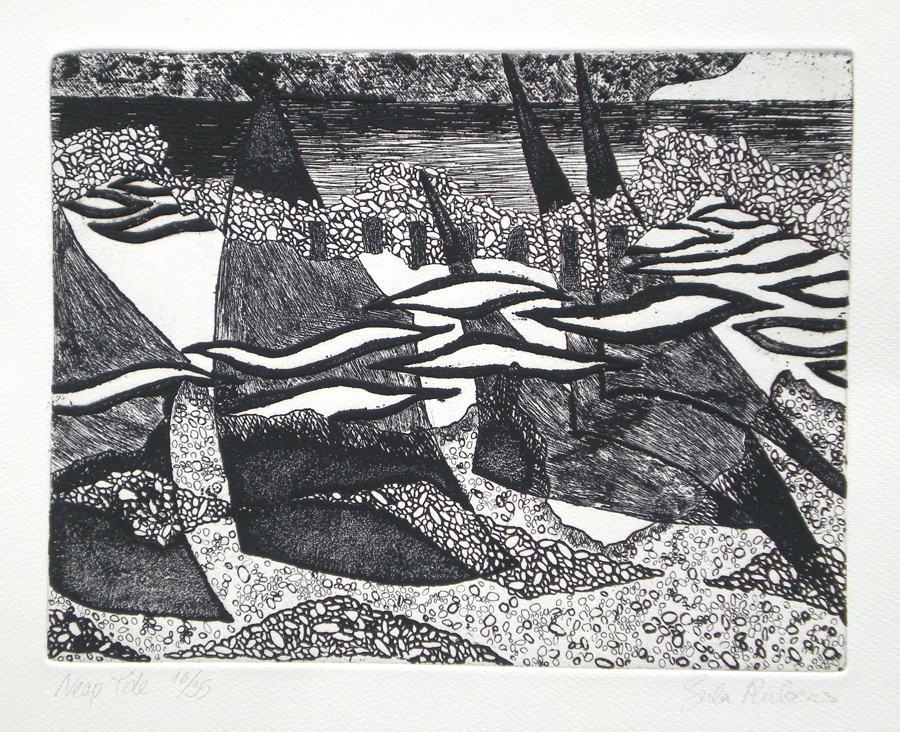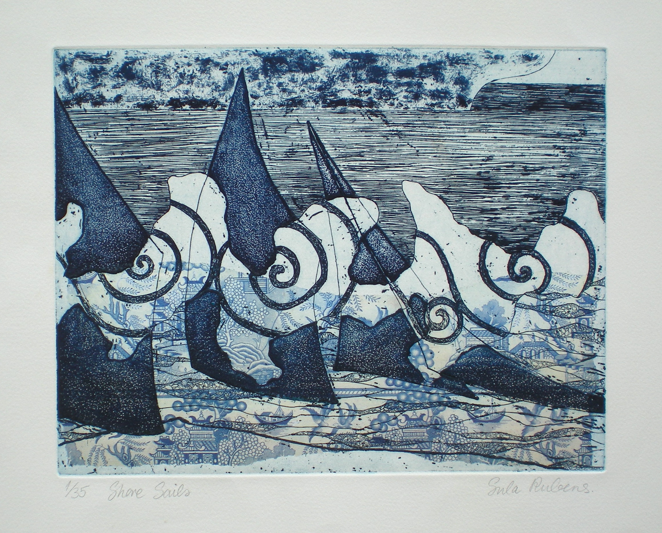 Prints For Sula printmaking is an integral part of the process of developing ideas and themes in a series of work. SHORE SAILS etching (chine colle) 23 x 30 cm SHORE LINES etching 23 x 30 cm NEAP TIDE etching 23 x 30 cm DONOUSSA QUAY etching (chine colle) AIR SAIL etching (chine colle) SHORE FLIGHT ETCHING (chine colle) 23 x 30 cm JUG etching (chine colle) 30 x 22 cm PRUE’S ROOM etching Share this: Share on Facebook (Opens in new window) Facebook Share on X (Opens in new window) X Like Loading...