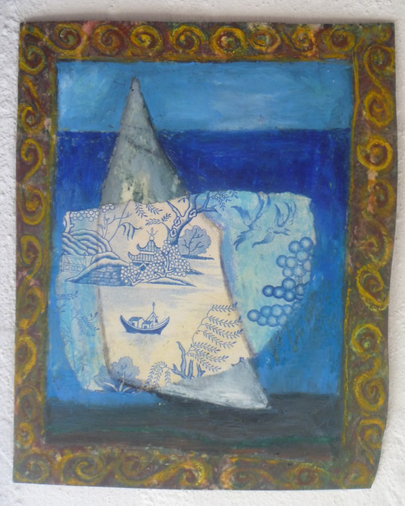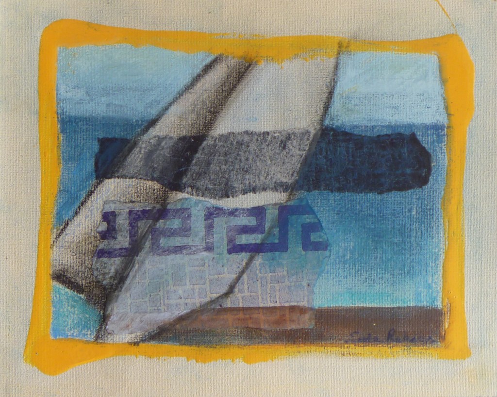 ALDEBURGH SAIL collage, Hammerite & pastel on paper